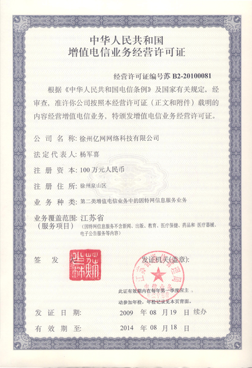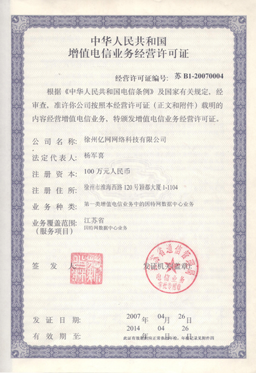 亿网荣誉证书